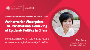 Yan Long is an Associate Professor of Sociology at the University of California, Berkeley. She is a political and organizational sociologist whose research examines how globalization and authoritarian politics intersect in domains such as public health, civic action, and digital technology. Her award-winning articles have appeared in the American Journal of Sociology, the Journal of Public Administration Research and Theory, and Social Science & Medicine, among others. Her book, Authoritarian Absorption: The Transnational Remaking of Epidemic Politics in China (Oxford University Press, 2024), has received four national distinctions, including the 2025 Best Book on Asia from the American Sociological Association.