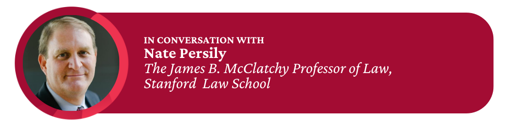 Nate Persily is the James B. McClatchy Professor of Law at Stanford Law School, with appointments in the departments of Political Science and Communication. He is the founding codirector of the Stanford Cyber Policy Center and its Program on Democracy and the Internet. His scholarship focuses on the “Law of Democracy,” which addresses issues such as voting rights, political parties, campaign finance, redistricting, and election administration. He has served as a special master or court-appointed expert to craft congressional or legislative districting plans for numerous states and as the Senior Research Director for the Presidential Commission on Election Administration. He is coauthor of the leading election law casebook, “The Law of Democracy”, a volume on “Social Media and Democracy,” and most recently, he coedited “The Digitalist Papers: Artificial Intelligence and Democracy in America” (2024). His current work, for which he has been honored as a Guggenheim and Andrew Carnegie Fellow examines the impact of changing technology on political communication, campaigns, and election administration.